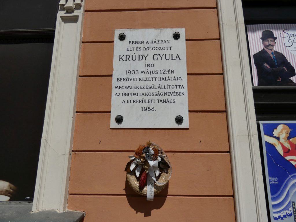 W ostatnich latach życia Gyula Krúdy cierpiał straszną biedę. Ponieważ nie był w stanie opłacić czynszu wypowiedzono mu umowę najmu na Wyspie Małgorzaty. Jednakże ze względu na ciężką sytuację przyznano mu małe mieszkanie w Óbudzie, przy ulicy Kościelnej (Templom 15). Rodzina mogła też zabrać ze sobą swoje stare, zniszczone meble. „Z naszych trzech pokoi dwa wychodziły na dziedziniec, a jeden na ulicę. Ten stał się pokojem ojca” wspominała Zsuzsa Krúdy. „W maleńkiej, ciemnej łazience stała odrapana, pogięta blaszana wanna; istna kara od Boga po leczniczych kąpielach na Wyspie”.