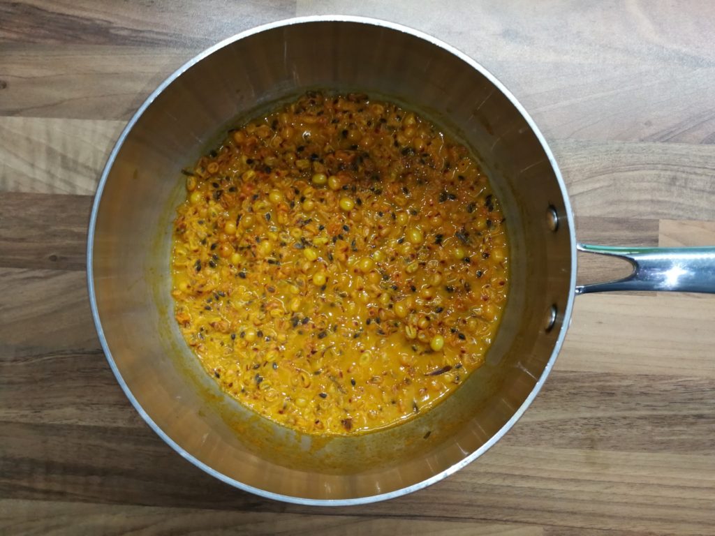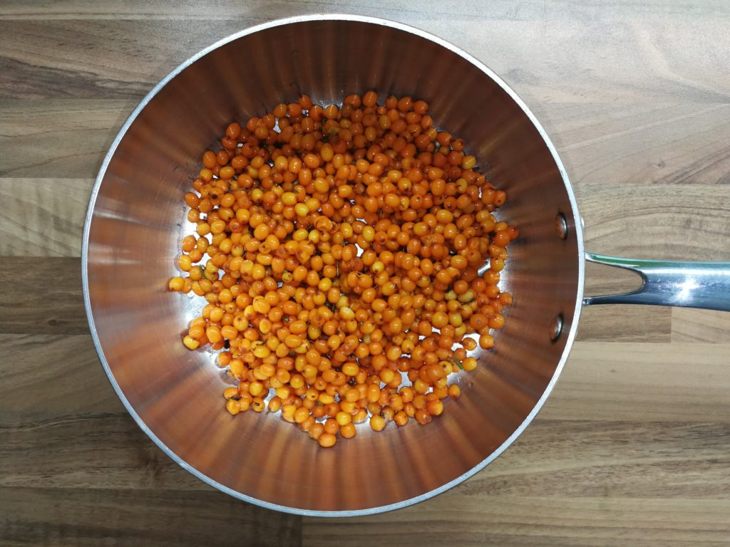- Oczyszczony i wymyty rokitnik zagotować w niewielkiej ilości wody. Dusić pod przykryciem aż owoce się rozpadną (około 5 minut).