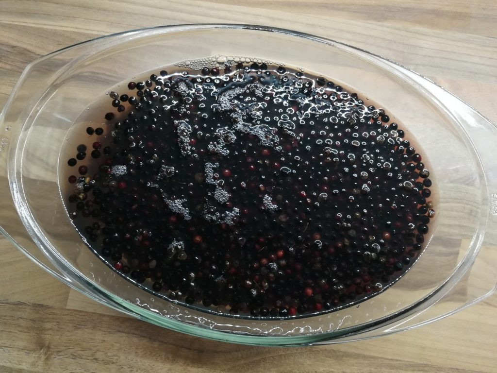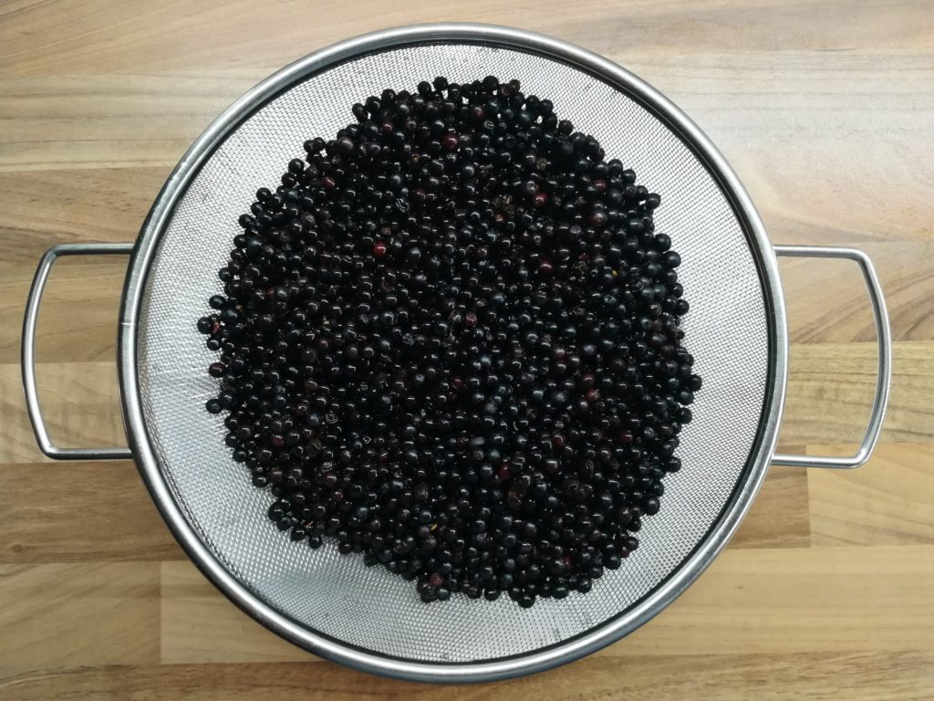 • 500 g dojrzałych owoców czarnego bzu, pozbawionych ogonków i dokładnie wymytych.